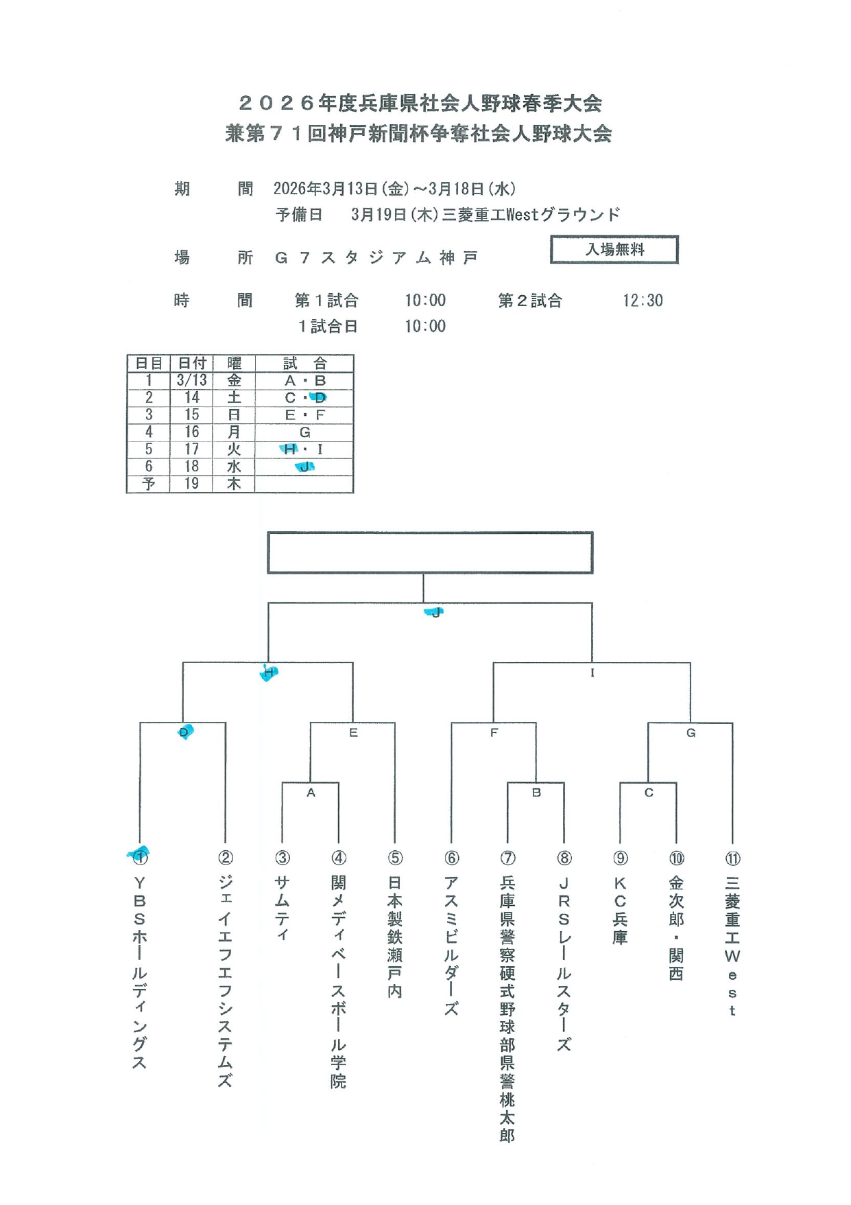 2026年度兵庫県社会人野球春季大会 兼 第71回神戸新聞杯争奪社会人野球大会出場のお知らせ【トーナメント表掲示】